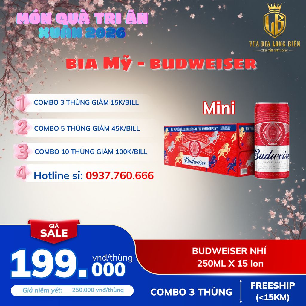 🍺 BUDWEISER TẾT 2026 – THÙNG 15 LON 250ML