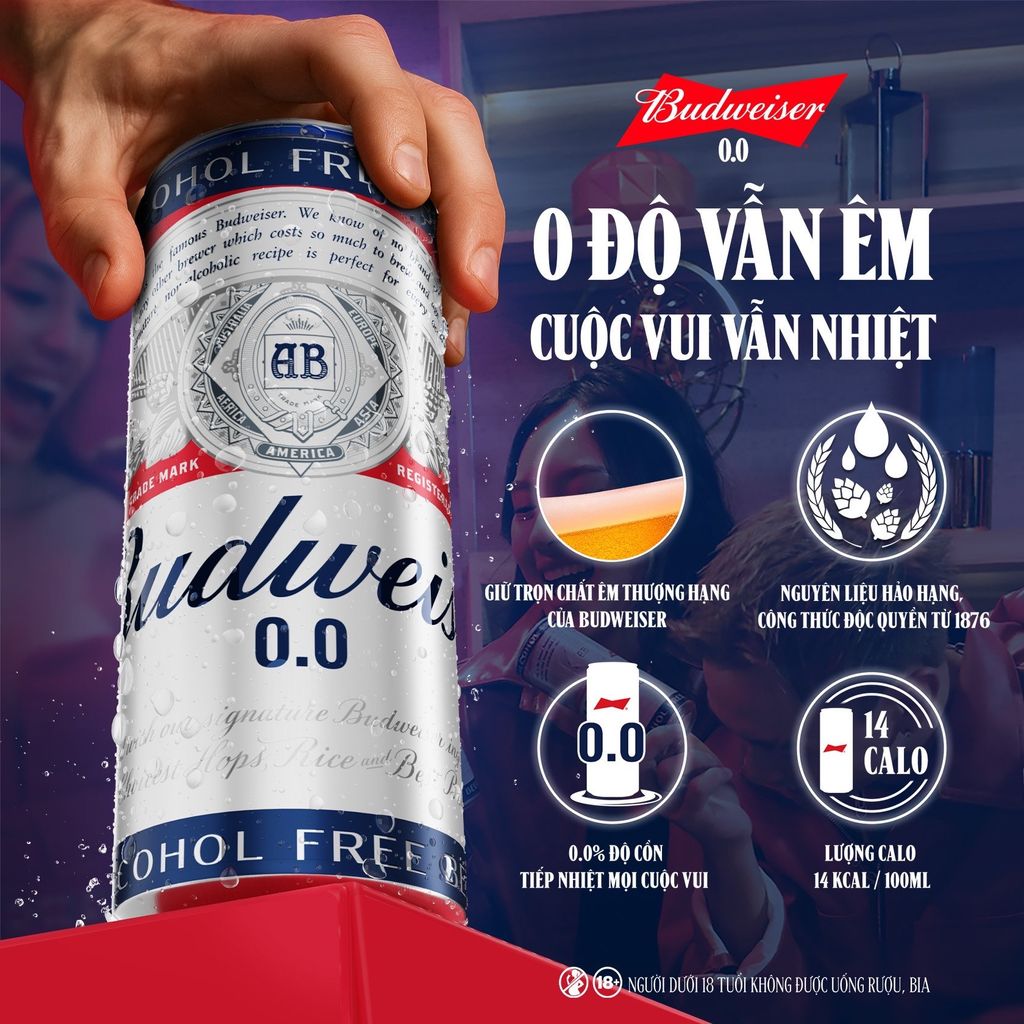 🍺 BUDWEISER 0.0 – BIA KHÔNG CỒN CHUẨN MỸ